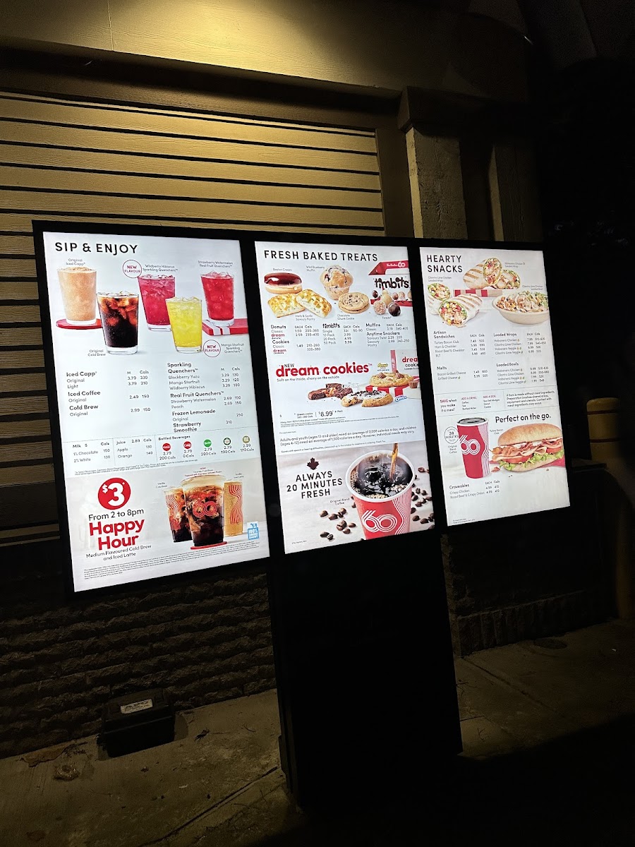 The bakery selection complements the drinks perfectly, featuring freshly baked goods like chocolate glazed Timbits, Boston cream and apple fritter donuts, flaky croissants, and hearty bagels. These treats offer a satisfying mix of sweet and savory, ideal for a quick snack or a light breakfast. While some customers note occasional inconsistencies in breakfast sandwiches, the overall fast, friendly service, especially at the drive-thru, adds to the ease and appeal of dining at Tim Hortons.